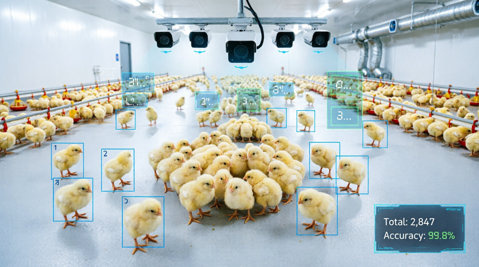 ❌ Ручной подсчёт тысяч голов занимает часы, в течение которых цыплята продолжают двигаться.